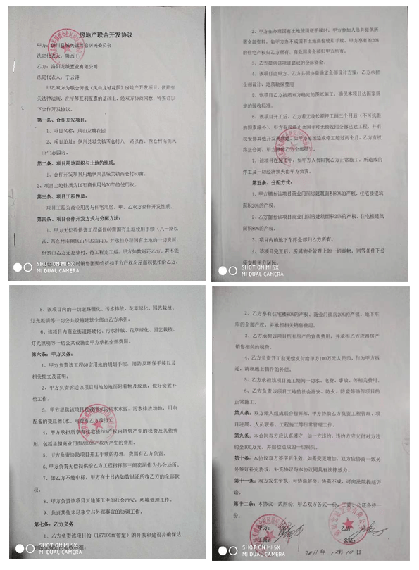 2011年底,洛阳龙城置业有限公司(法人代表于云涛)与熊西干(时任西仓村委会书记主任)签定《联合开发协议》建设城中村改造项目“凤山龙城”,占地65亩,合作协议载明土地性质为商住用地70年使用权,建筑面积为16.7万㎡;村委会负责土地上的建筑物拆迁及住户安置补偿等,负责办理65亩土地资金,并承担办理商住土地手续的一切费用;项目建成后,村委会享有20%的住宅和80%商业铺面的权利,龙城公司利用开发资质销售剩余权利。