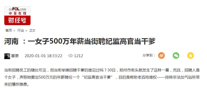 河南 :一女子500万年薪当街聘纪监高官当干爹