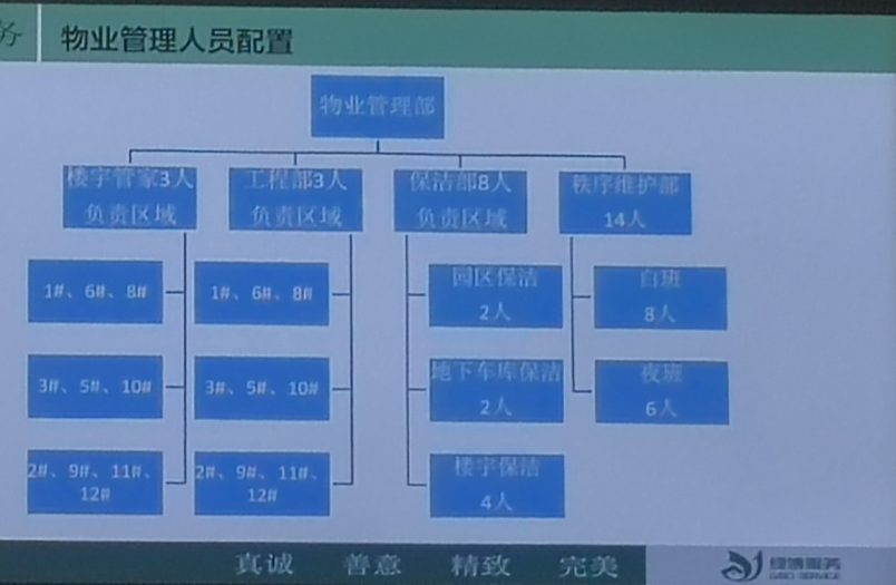 绿城·诚园小区物业是按特二级标准收取物业费的,其《物业管理人员配置表》中显示:秩序维护部(保安)14人,其中白班8人、夜班6人。