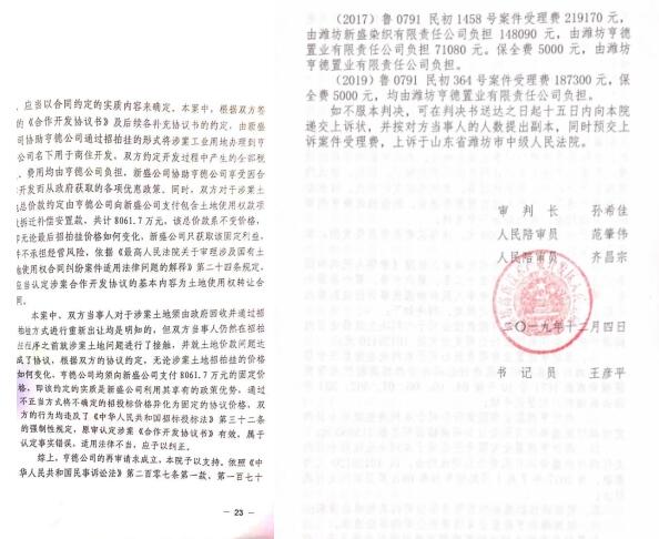 这个新盛公司起诉我公司的土地使用权转让官司,是必输无疑的!而实际从2017年9月起诉至今,历经了潍坊高新法院一审判决合同无效、潍坊中院二审发回、高新区法院重一审改判合同有效、潍坊中院重二审维持、到省高院再审裁定合同无效、指令市中院再审后改判维持原一审判决,经三级法院、六次裁决。正确的一审判决历经曲折,长期不能维持,是叶团伙控制潍坊中院多个部门,将两审制变成了六审!直至2021年3月15日,我们才得到了拨乱反正的判决。叶团伙近四年支持无理缠诉,害苦了我们!