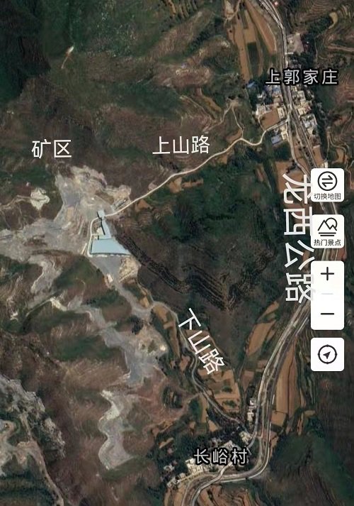 11月24日夜,多辆绿色重型自卸车,从上郭家庄村的山路驶向位于村庄西南方向的矿山。大量装满石料的重型自卸车,从矿山向东南方向的土石路行驶下山,在长峪村驶上龙西公路。一部分自卸车经西山北乡行驶至京赞公路,最后进入了满城区地界。